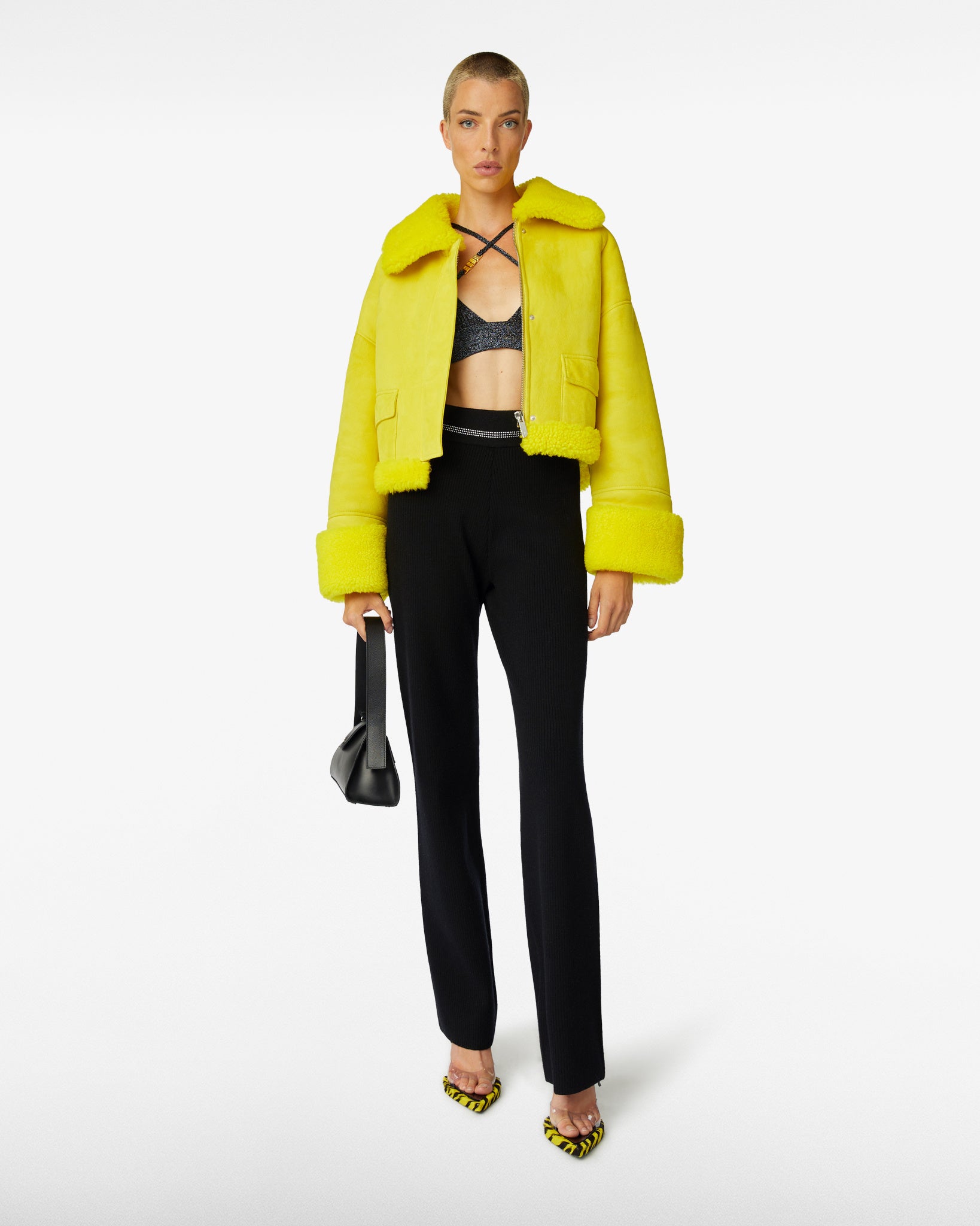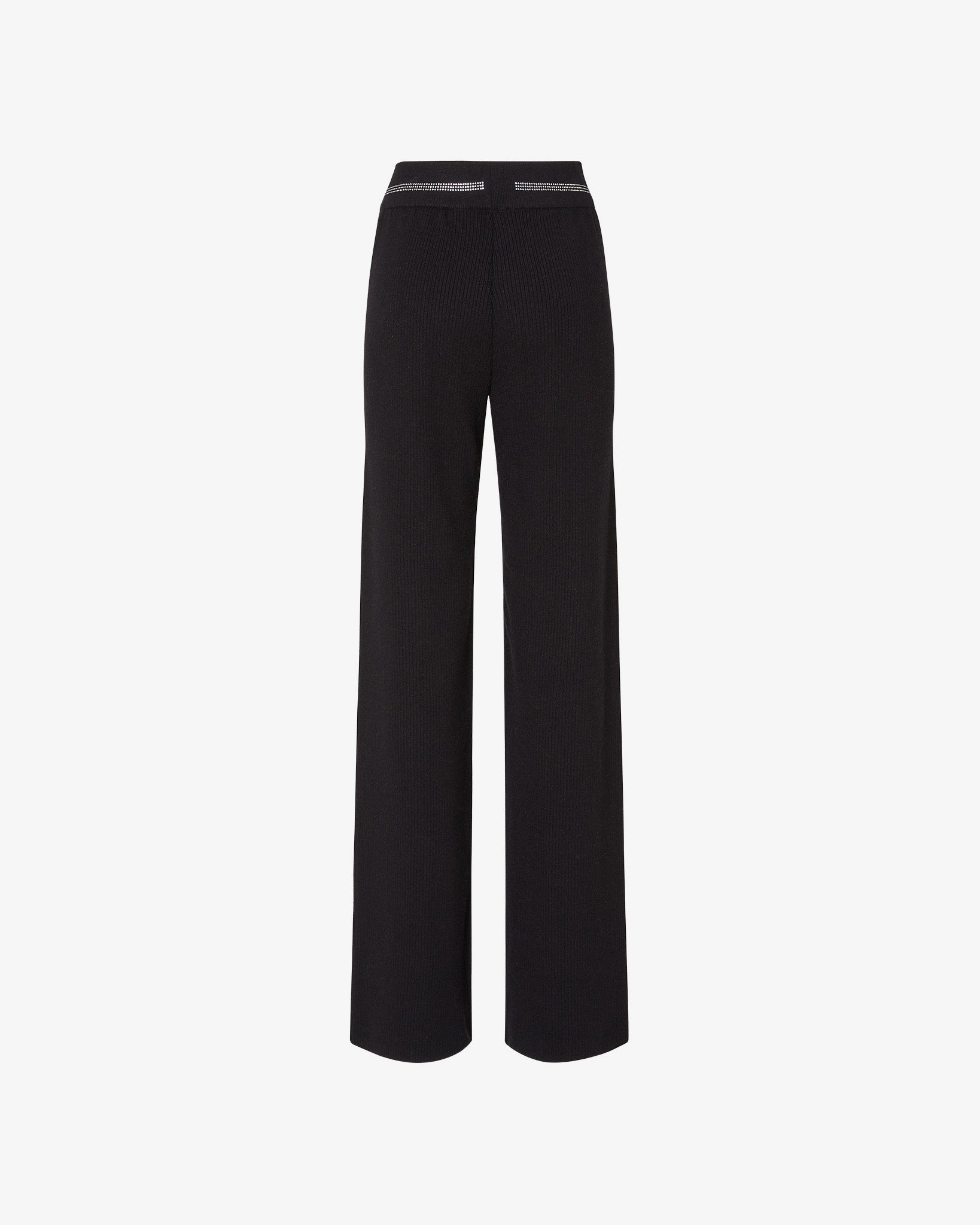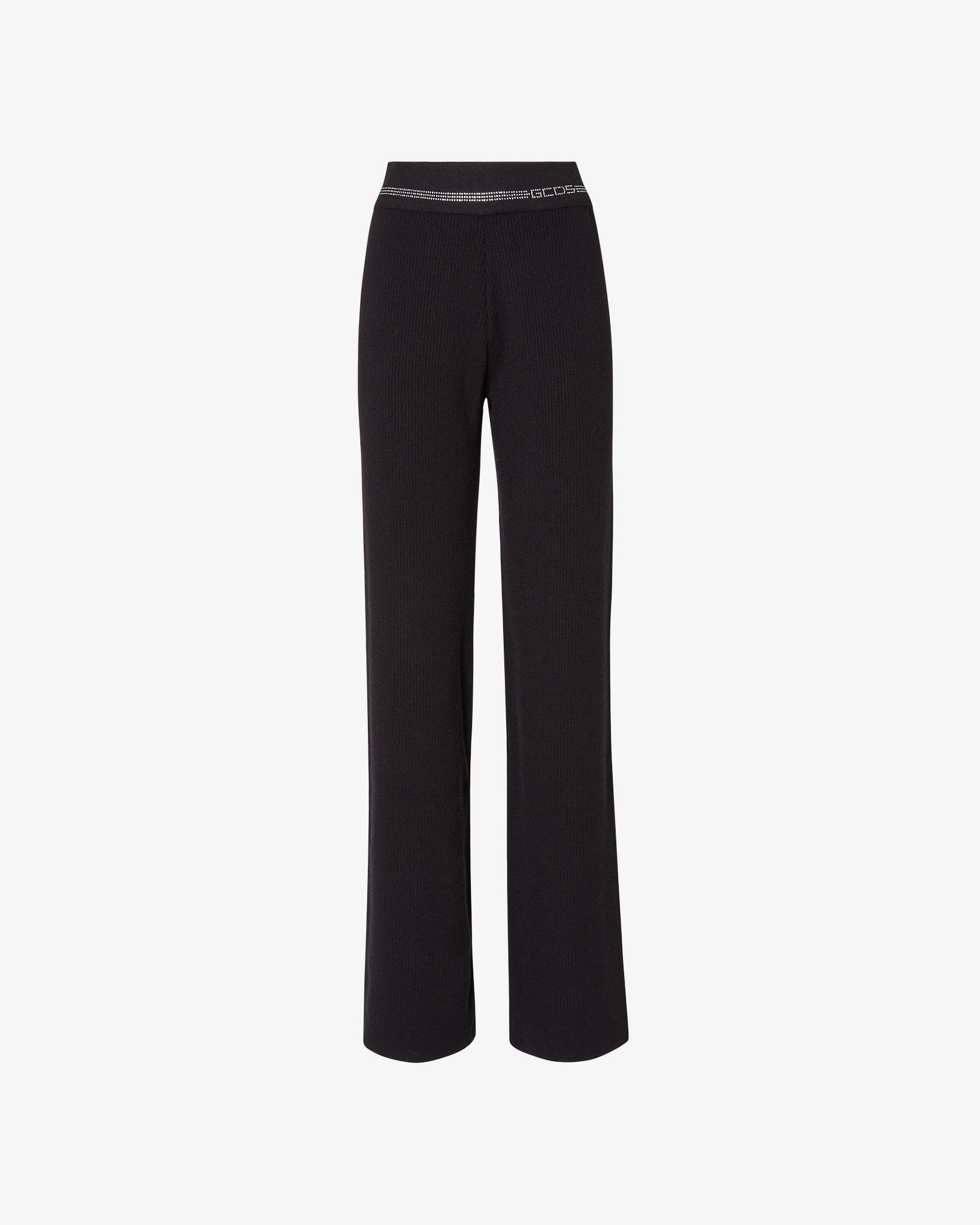 Trousers made from a soft viscose with a comfortable fit, with three rows of rhinestones and the GCDS logo on the waist for a sophisticated touch. Straight fit.