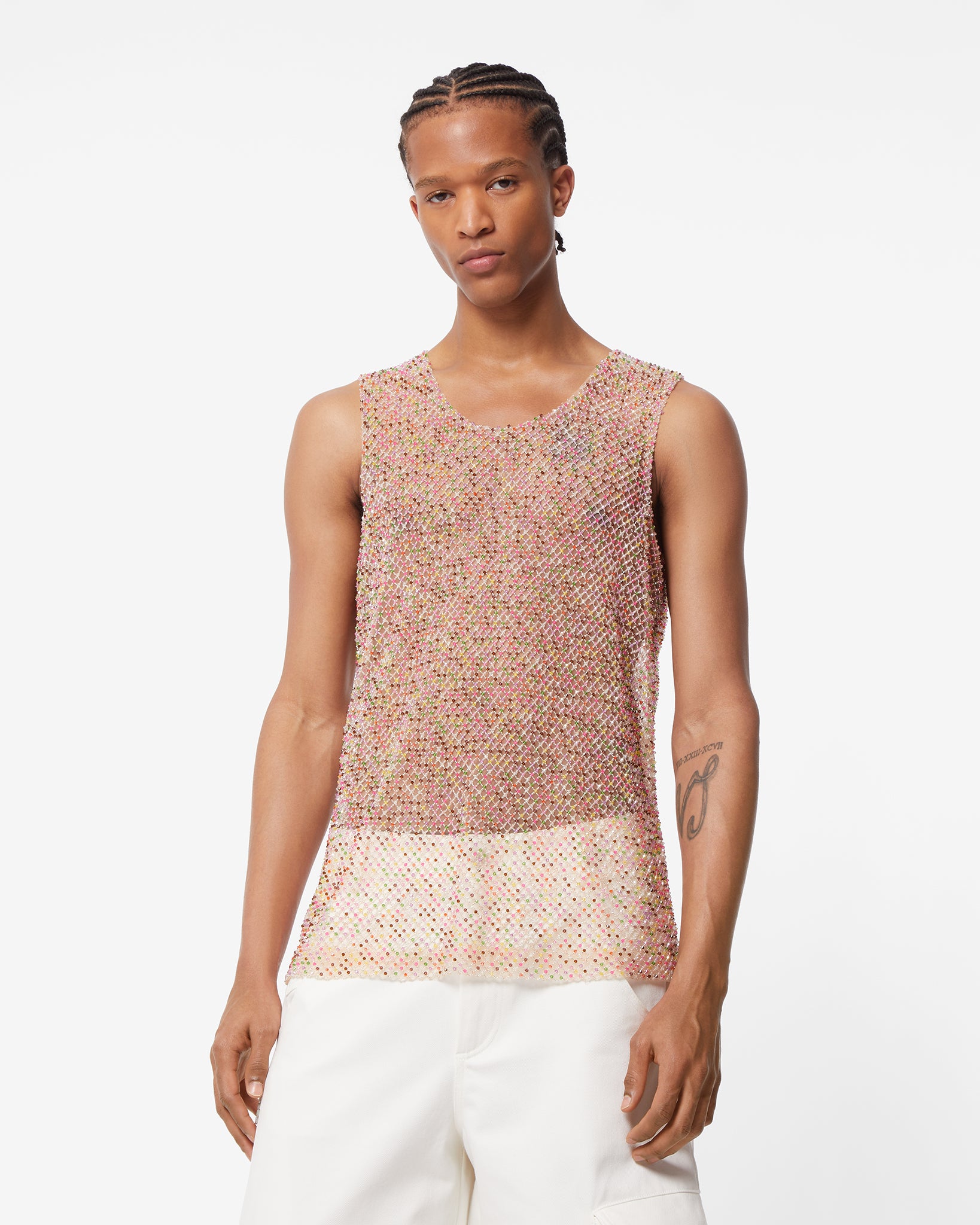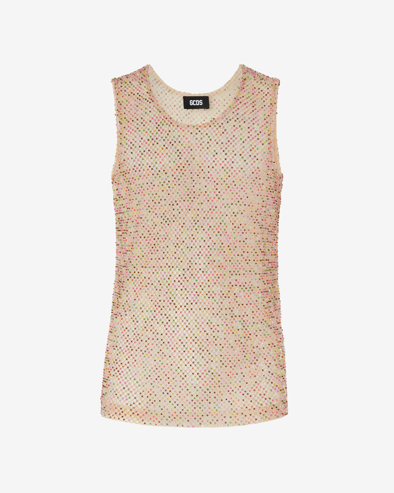Lowest price within 30 days before promotion: € 936 Multicolor crystal beads hand embroidered on tank tulle top.