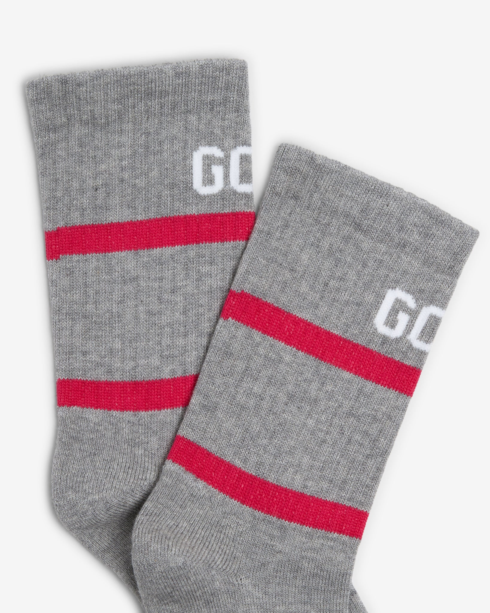 Cotton blend socks with Jacquard GCDS logo and contrasted double linear artwork. "GCDS Bliss” logo on the front.