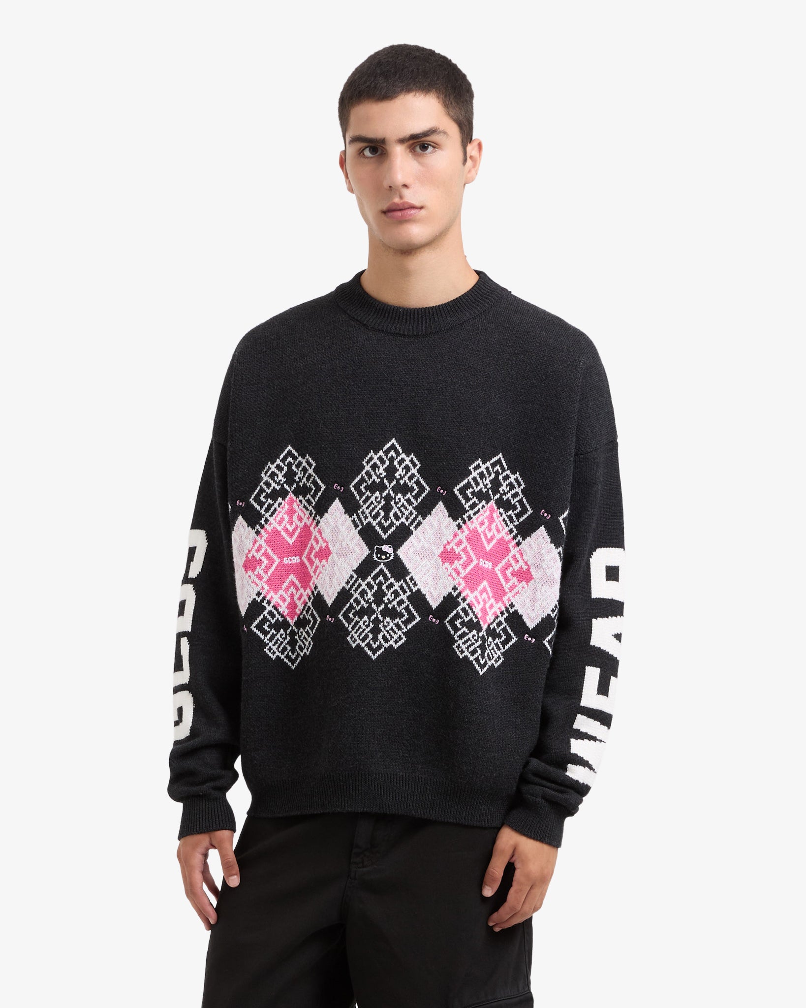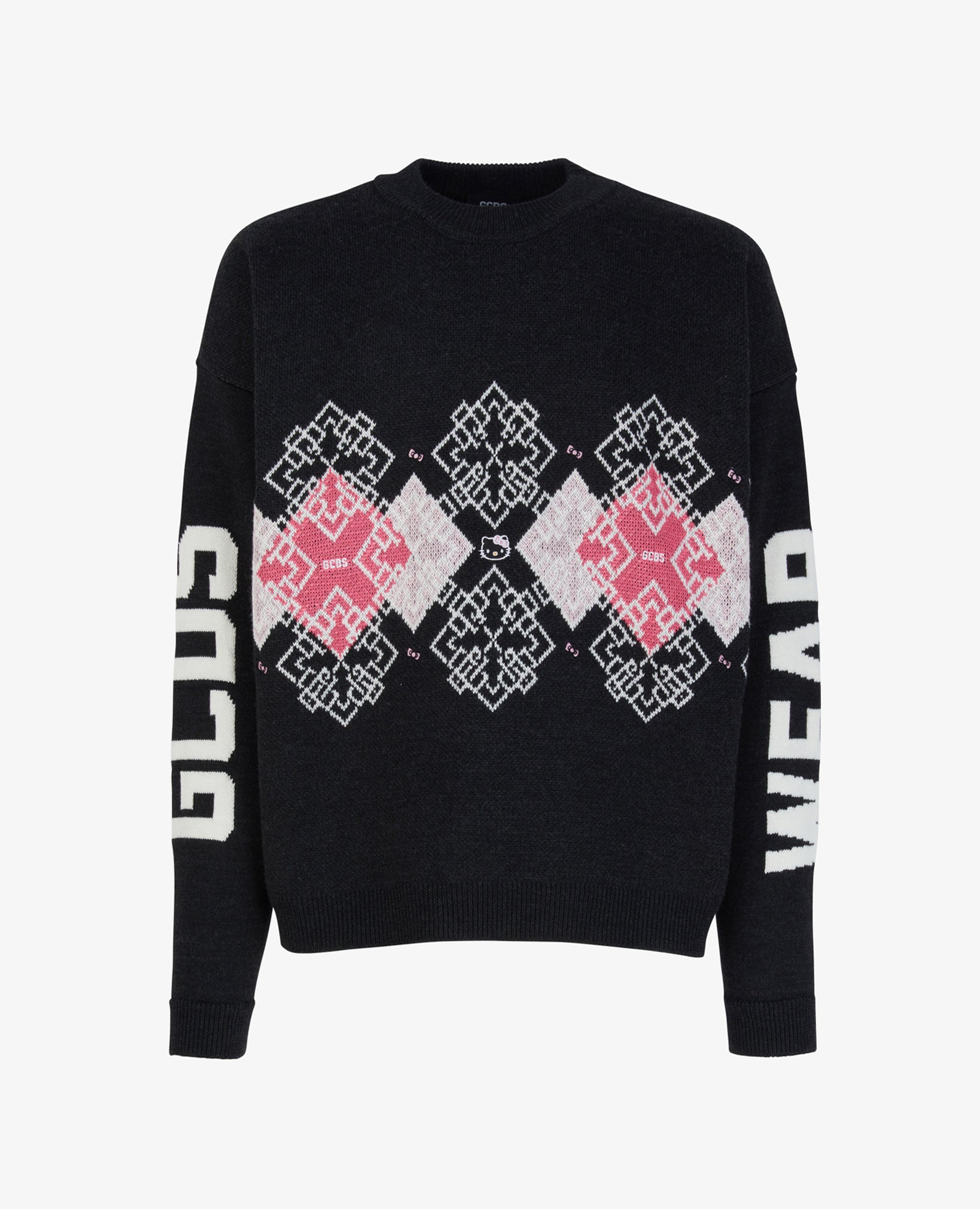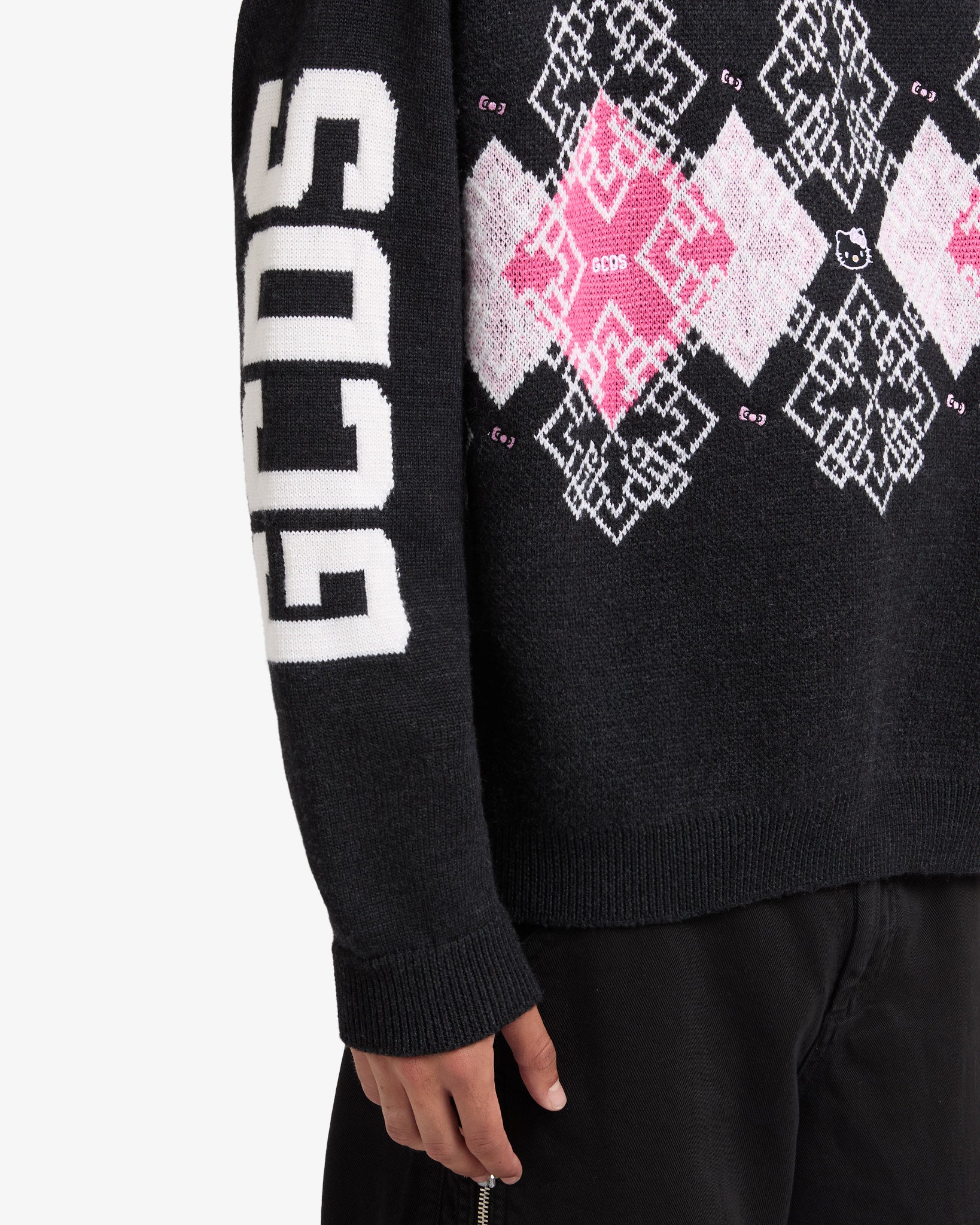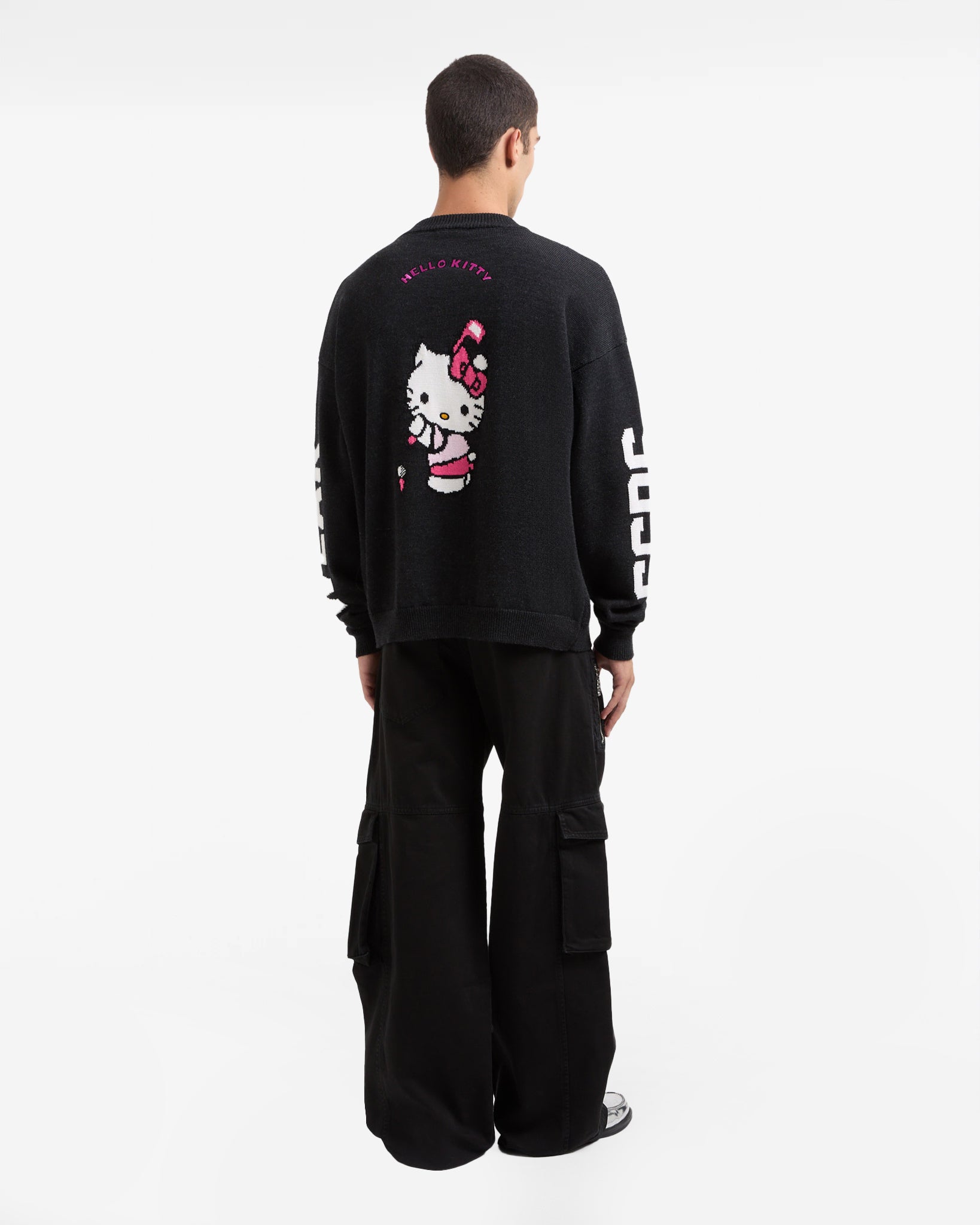 Maglione in misto lana con grafiche jacquard e ricami di Hello Kitty. Questo capo dalla vestibilità ampia è impreziosito da un intarsio del logo GCDS sulle maniche.